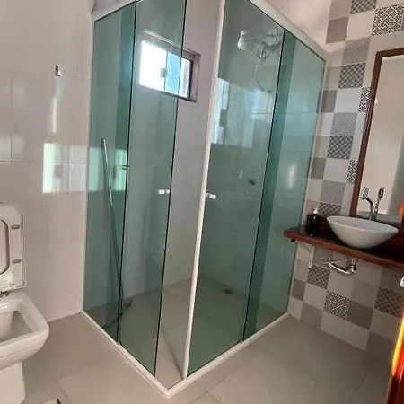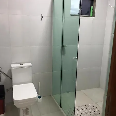 Casa Temporada Aconchego E Tranquilidade 1 Villa comes with a bathroom with a separate toilet, a shower, and a washing machine.